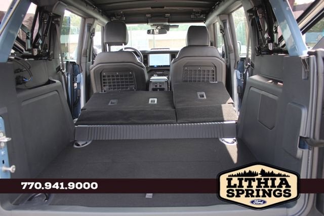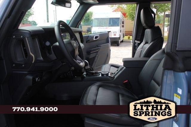 Inside, the Bronco Badlands surrounds you in luxurious comfort with Black Onyx, leather-trimmed/vinyl bucket seats. The 10-way power driver's seat and 8-way front passenger seat ensure exceptional support, while the second-row armrest and MOLLE strap system provide versatile storage solutions. The upgraded carpet floor mats add a touch of refinement to the cabin, complementing the vehicle's premium aesthetic.