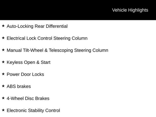 - LED Cargo Area Lighting located in cargo bed activated with switch on center switch bank or key fob