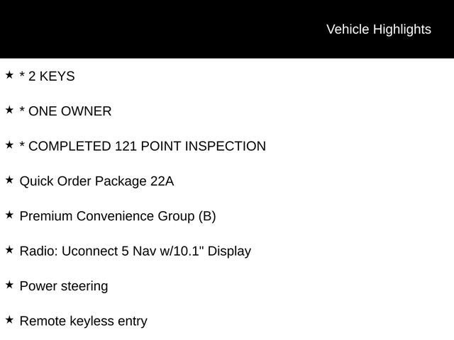 This ProMaster 2500 High Roof is packed with premium features that elevate your driving experience. The Uconnect 5 Nav system with a 10.1" display puts cutting-edge technology at your fingertips, while the wireless charging pad and 115V auxiliary power outlet keep your devices powered and ready. Enjoy the convenience of automatic headlamps, rain-sensing wipers, and traffic sign information to stay informed and focused on the road ahead.