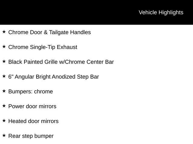 - Chrome Door & Tailgate Handles, Wrapped Steering Wheel, Black Painted Grille with Chrome Center Bar
