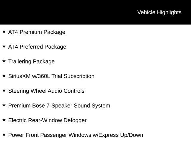- AT4 PREMIUM PACKAGE (Includes AT4 Preferred Package and Off-Road High Clearance Steps)